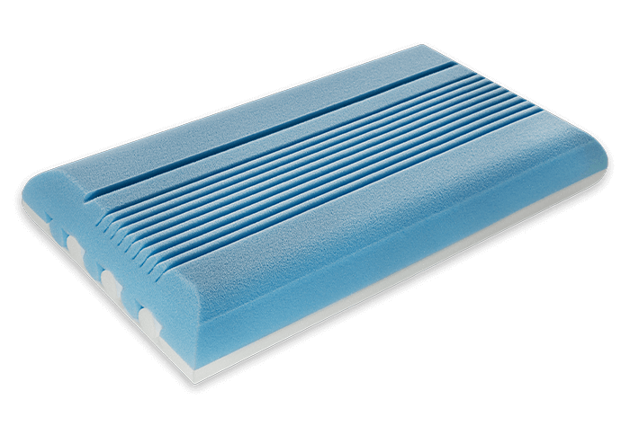 Il design a saponetta del cuscino Dinamico è particolarmente indicato per chi dorme supino o sul fianco. La superficie del cuscino presenta speciali scanalature che favoriscono un flusso d’aria continuo, garantendo un microclima ideale per tutta la durata del riposo.