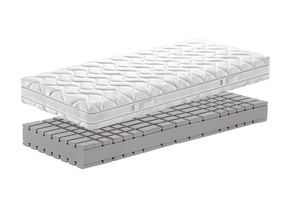 Materasso dall’elevato comfort, realizzato in Aquatech® ad alta densità per sostenere la zona lombare ed accogliere senza compressioni la zona delle spalle e del bacino.